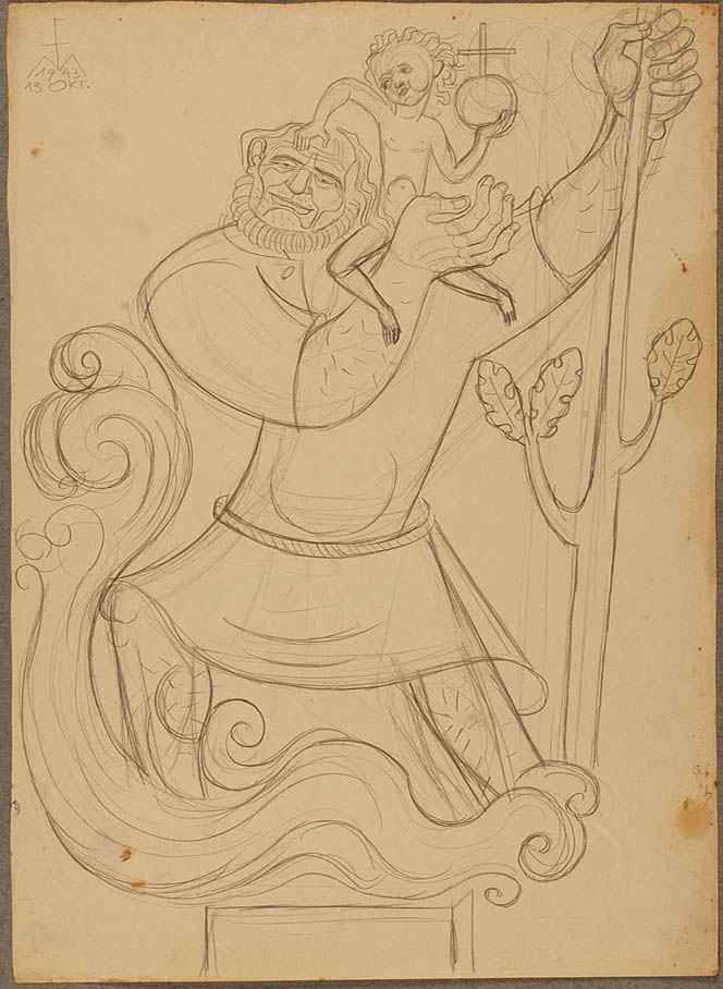 1. St. Christophorus, Entwurf für Skulptur auf einem Podest, 13.10.1943